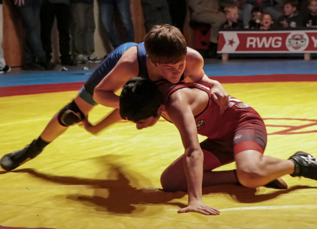 Gleich zu Beginn sorgte ein besonderer Moment für Gänsehaut: Odin Seibert, der erst kurz zuvor seinen 14. Geburtstag gefeiert hatte, gab sein Debüt in der Mannschaft. Der junge Ringer zeigte keinerlei Nervosität, kämpfte mutig und schulterte seinen Gegner nach weniger als drei Minuten. Ein Auftakt nach Maß, der die mitgereisten Fans von den Sitzen riss.